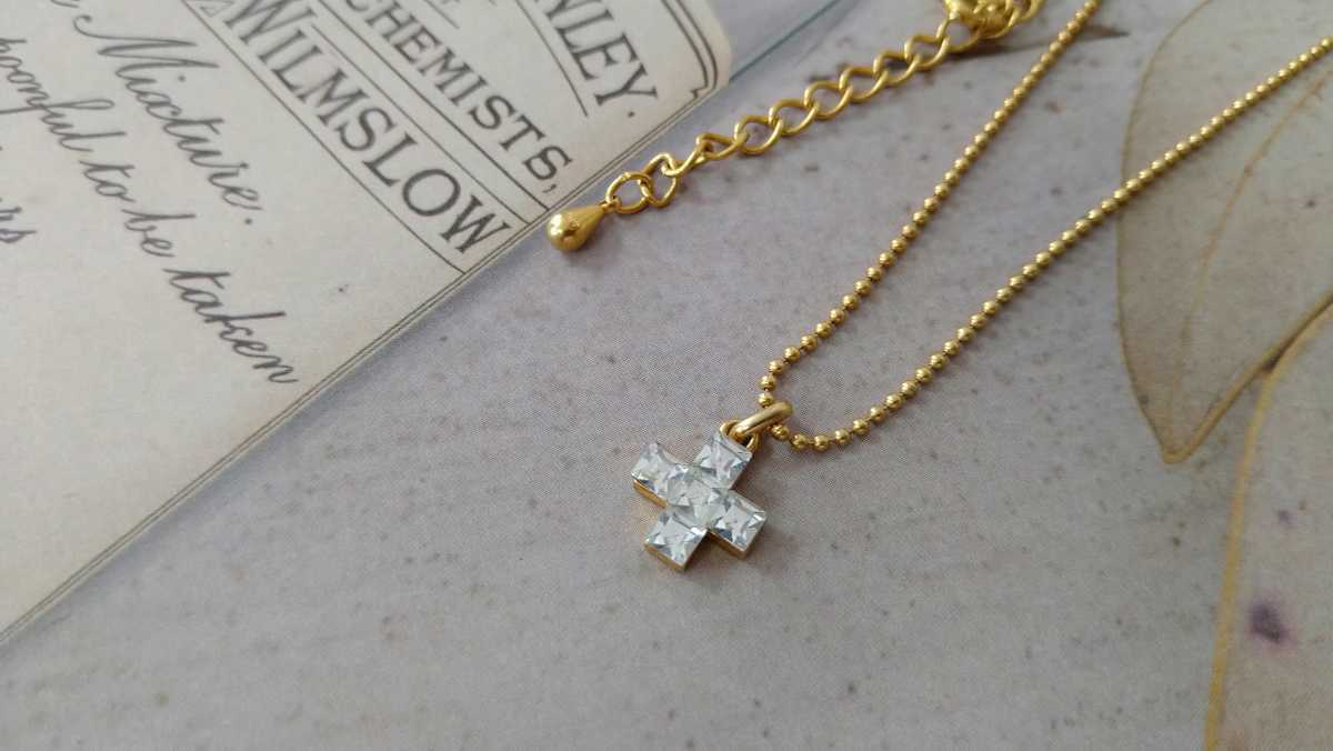 - □クロスモチーフ×クリアビジュー・ネックレス□