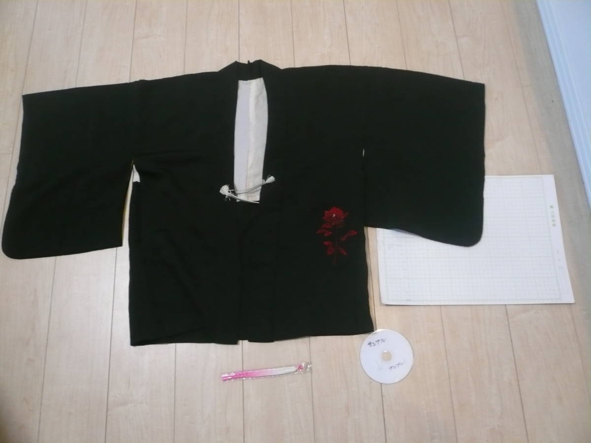 - M即決有 KIMONOHAORI 黒BLACK 紅薔薇柄刺繍 羽織コートCortDress REDROSE 花柄模様 和柄古典 レトロ シック 着物 和装 送料600円~