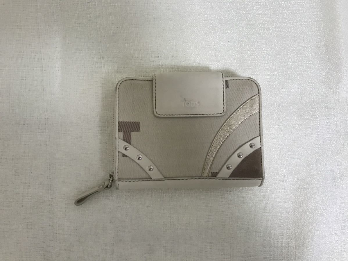 - 本物トッズTODS本革レザーキャンバス二つ折り財布サイフ札入れトラベルメンズレディース旅行イタリア製白ホワイト柄