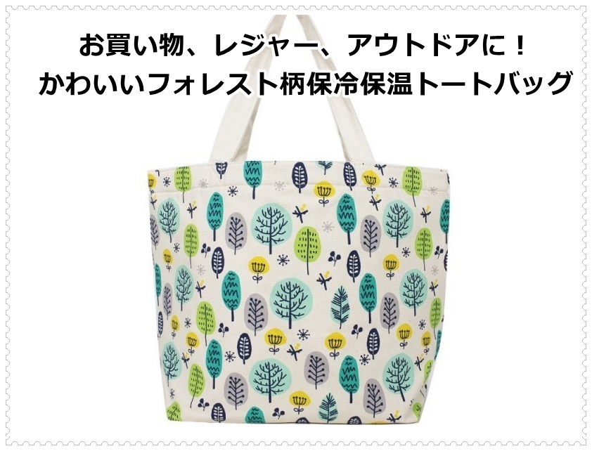 - お買い物、レジャー、アウトドアに!レディースかわいいフォレスト柄保冷保温トートバッグ