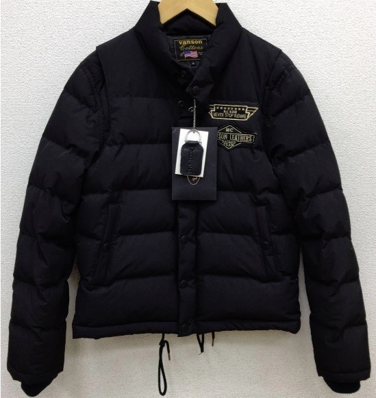 - 新品■VANSON/バンソン 2WAY ダウンジャケット・NVJK-505 黒サンプル(L)