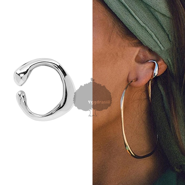 > YGG★ニュアンスライン 変形 イヤーカフ 銀 シルバー ウェーブ イヤリング ノンホール イヤーカフス 太め メンズもOK