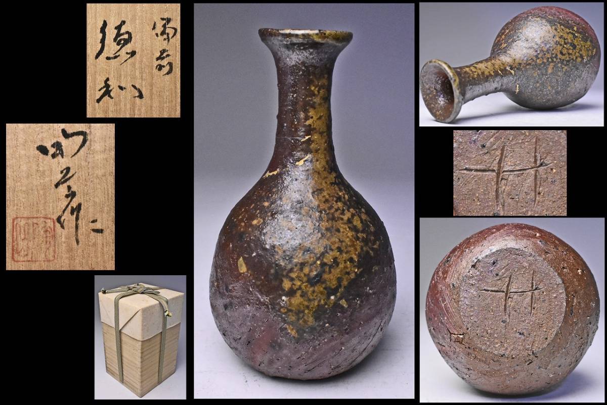 - 森陶岳 ★ 備前鶴首胡麻徳利 ★ 共箱 ★ 穴窯 ★ 古備前の様 ★ 検:寒風大窯 ★