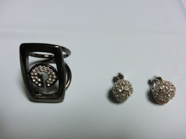 - ■未使用品:シルバーイヤリング+スカーフ止め Tm689