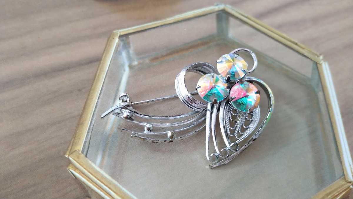 - □訳あり□オーロラカラービジュー×シルバーカラー・ブローチ□