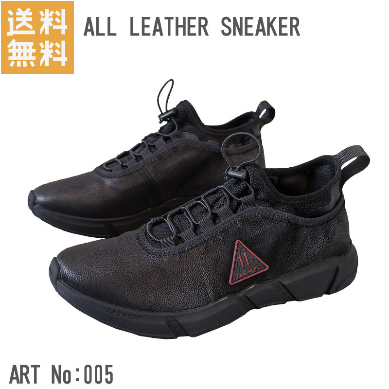 > スニーカー 25.5cm レザー ウォーキングシューズ 運動靴 ゴムひも EEE 通勤 オールレザー 本革 カジュアルシューズ 005