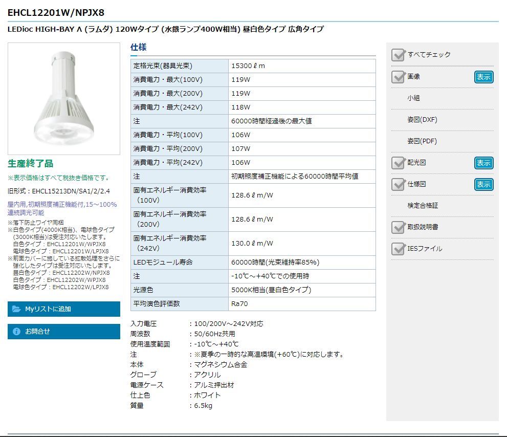 - ★ 未使用 IWASAKI/岩崎電気 EHCL12201W/NPJX8 HIGH-BAY ラムダ 120W (水銀ランプ400W相当) 昼白色 広角 ★