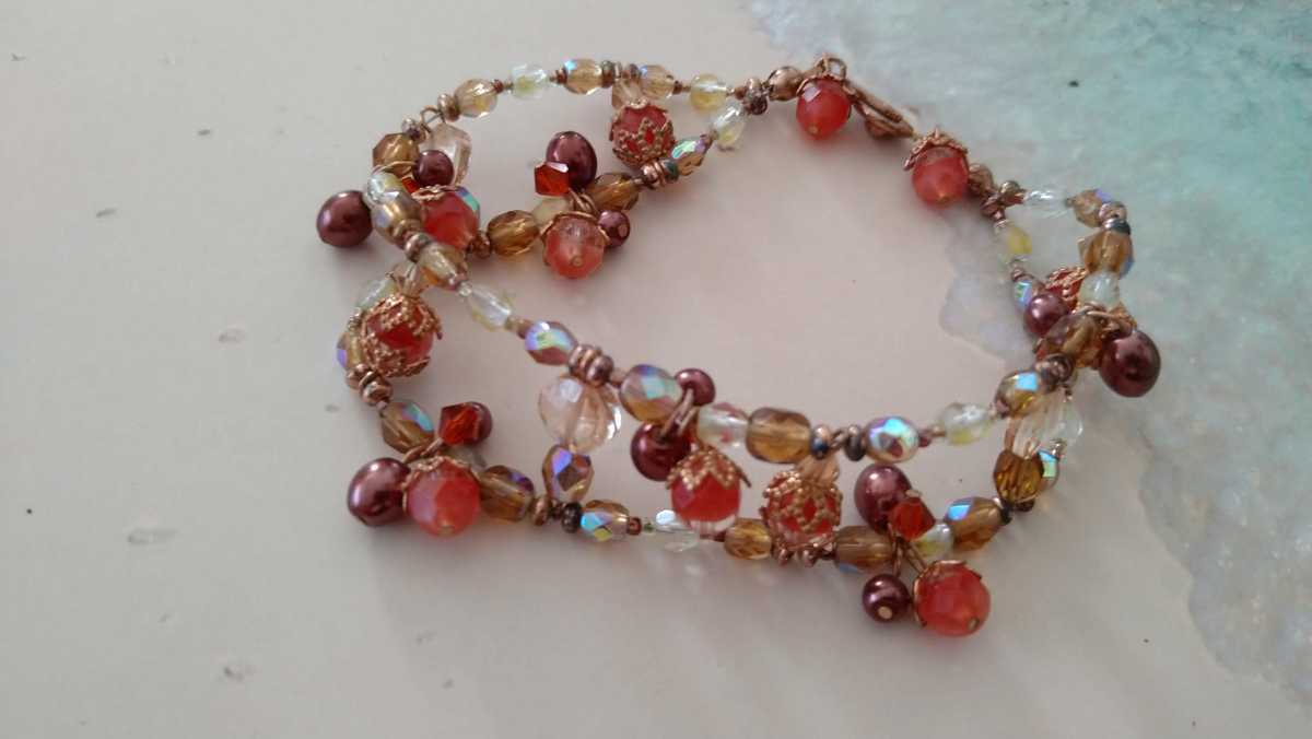 - □オーロラカラー・赤茶系 多面カットビーズ 2連風ブレスレット□ニュアンスカラー□