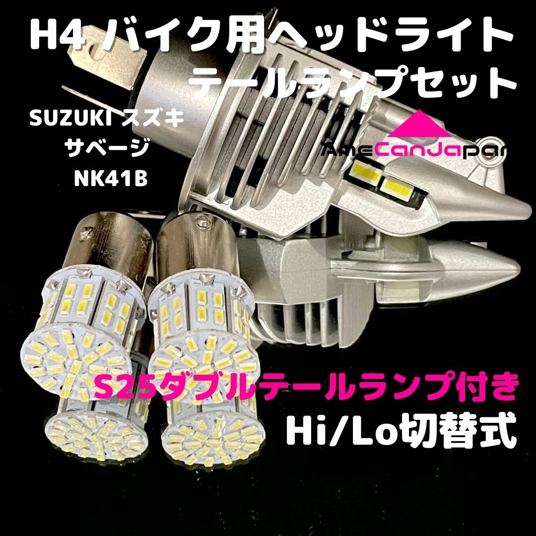 - SUZUKI スズキ サベージ NK41B LEDヘッドライト H4 Hi/Lo バルブ バイク用 1灯 S25 テールランプ2個 ホワイト 交換用