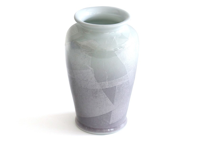 - 国産 陶器 花瓶 ■ パール仕上げ ■ パープル 6寸 ■ 単品 高さ18cm ■ 花瓶