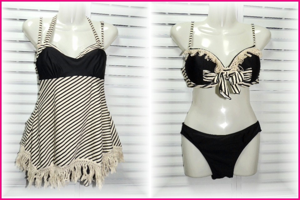 - YimeiSHan フリンジ飾り セパレート水着 タンキニ・スカートセット