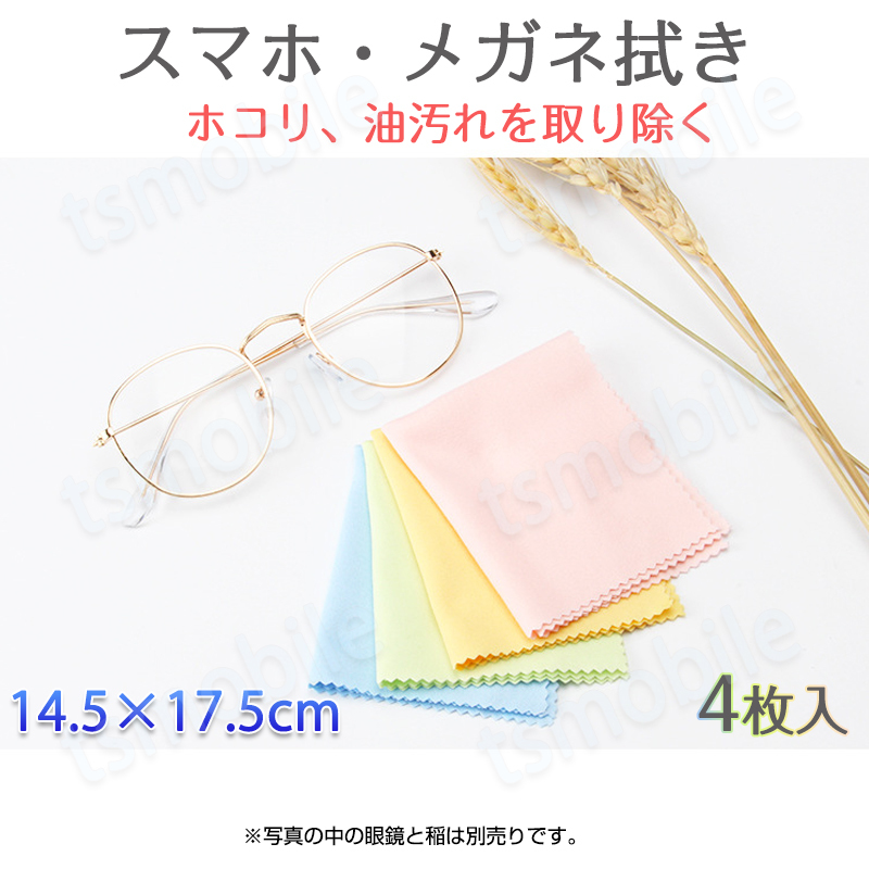> 眼鏡拭き4枚 眼鏡クロス 油汚れ ホコリ拭き取り クリニングクロス ディスプレー カメラレンズ スマホタッチパネル iPad タブレット 掃除