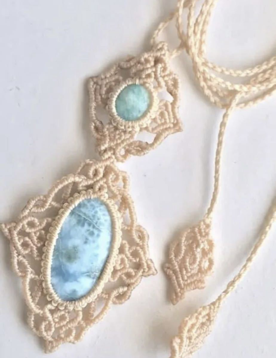 - ラリマー アマゾナイト マクラメネックレス 天然石 パワーストーン 海色 癒し