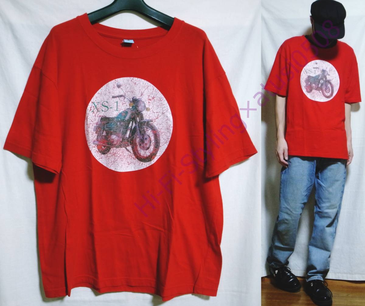 - ヤマハ XS-1 旧車 古着 バイク Tシャツ 赤 XL YAMAHA XS1 XS650 オートバイ 単車 メンズ ヴィンテージ オールド バイカー Tee Tshirt