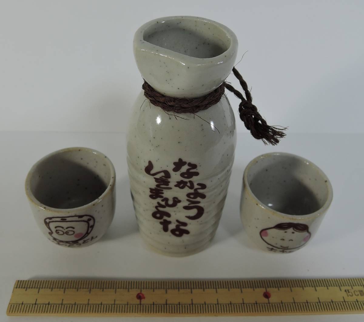 - ☆V09■東海工芸 おもしろばんしゃくミニ/面白晩酌 徳利&お猪口■なかよう いきまひよな/ひょっとこどん/おかめちゃん 未使用