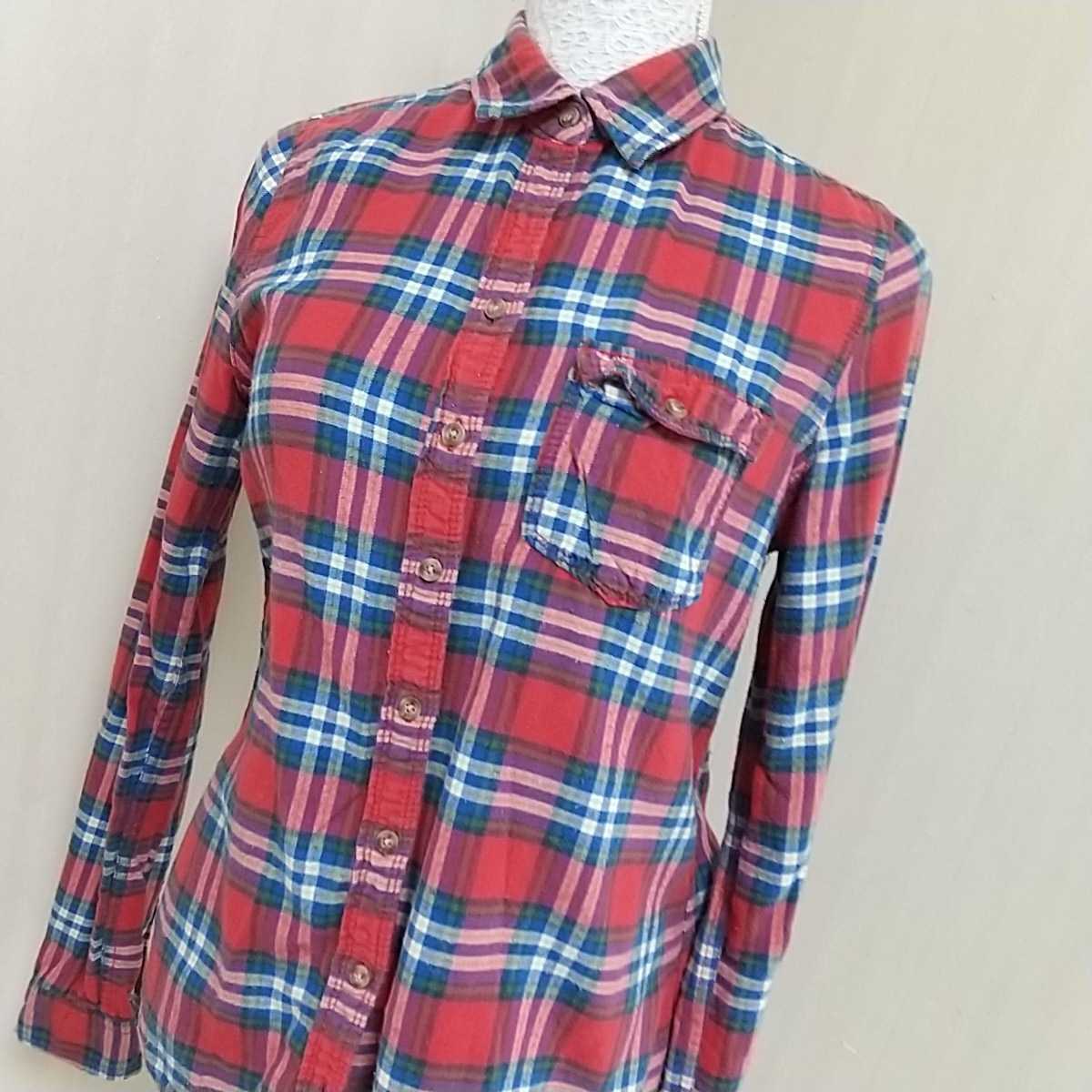 > アバクロンビー&フィッチ ニューヨーク Abercrombie&fitch new york レッド チェックシャツ レディース M