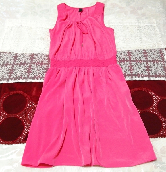 - 蛍光ピンクシフォン ノースリーブ ネグリジェ ハーフワンピース Fluorescent pink chiffon sleeveless negligee half dress