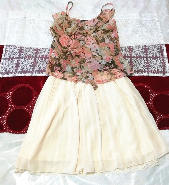 > 茶色ピンクシフォンキャミソール ネグリジェ フローラルホワイトスカート 2P Brown pink chiffon camisole negligee floral white skirt