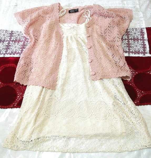 > ピンクニットレース羽織ガウン ネグリジェ キャミソールベビードールワンピースドレス 2P Pink knit lace gown negligee camisole dress