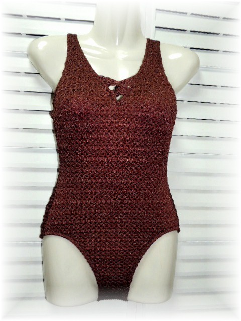 - NANNO 日本製 ニット風 ワンピース水着 9号/M ダークブラウン シャーリング加工