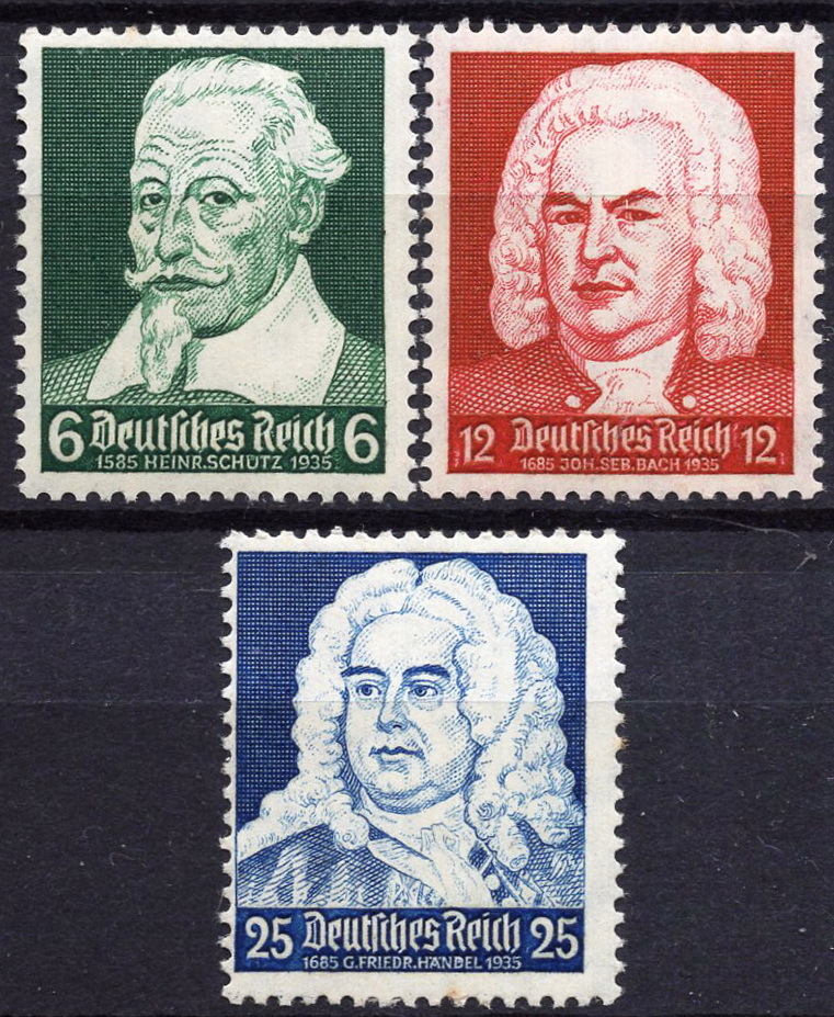 > ★1935年 ドイツ第三帝国 - 「作曲家ハインリヒ・シュッツ,バッハ,ヘンデル生誕記念」3種完 未使用(NH.LG)(SC#456-458)★YG-946