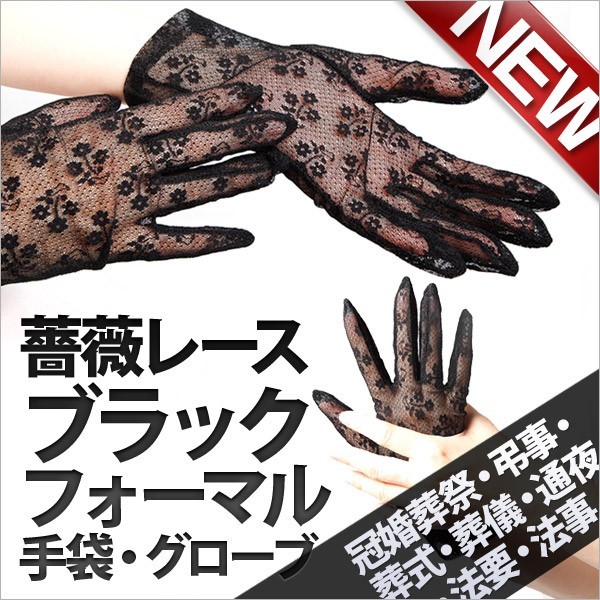 - 急なご用でネイルを落とせない方に薔薇レースブラックフォーマル手袋手ぶくろ冠婚葬祭・弔事・葬式・葬儀・通夜・法要・法事・てぶくろ