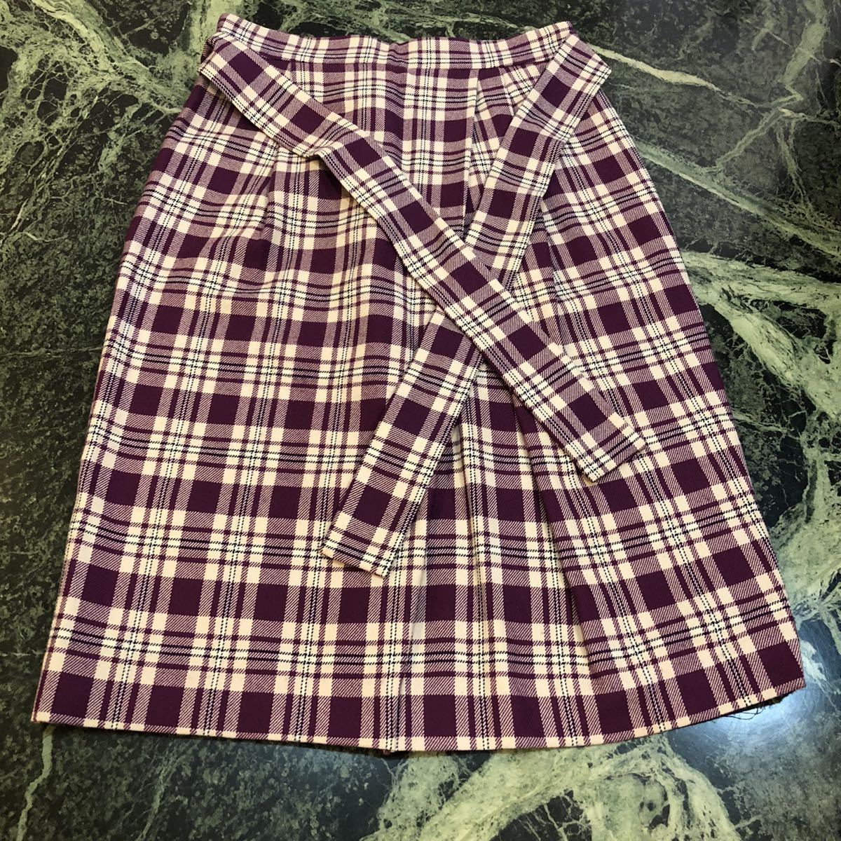 > 【美品】McGREGOR★マクレガー マックレガー チェックスカート 台形スカート ミモレ丈 紫 Mサイズ 毛100% チェック柄 レディース