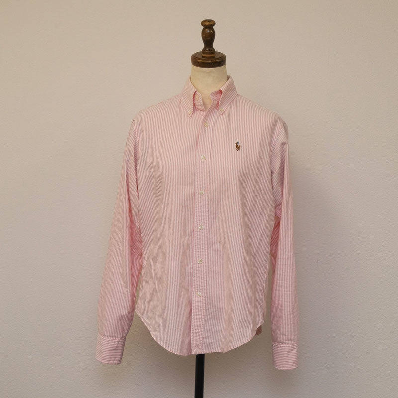- yq25-RALPH LAUREN ラルフローレン CLASSICFIT シャツ 2 ピンク ボーダー 長袖 ボタンダウン