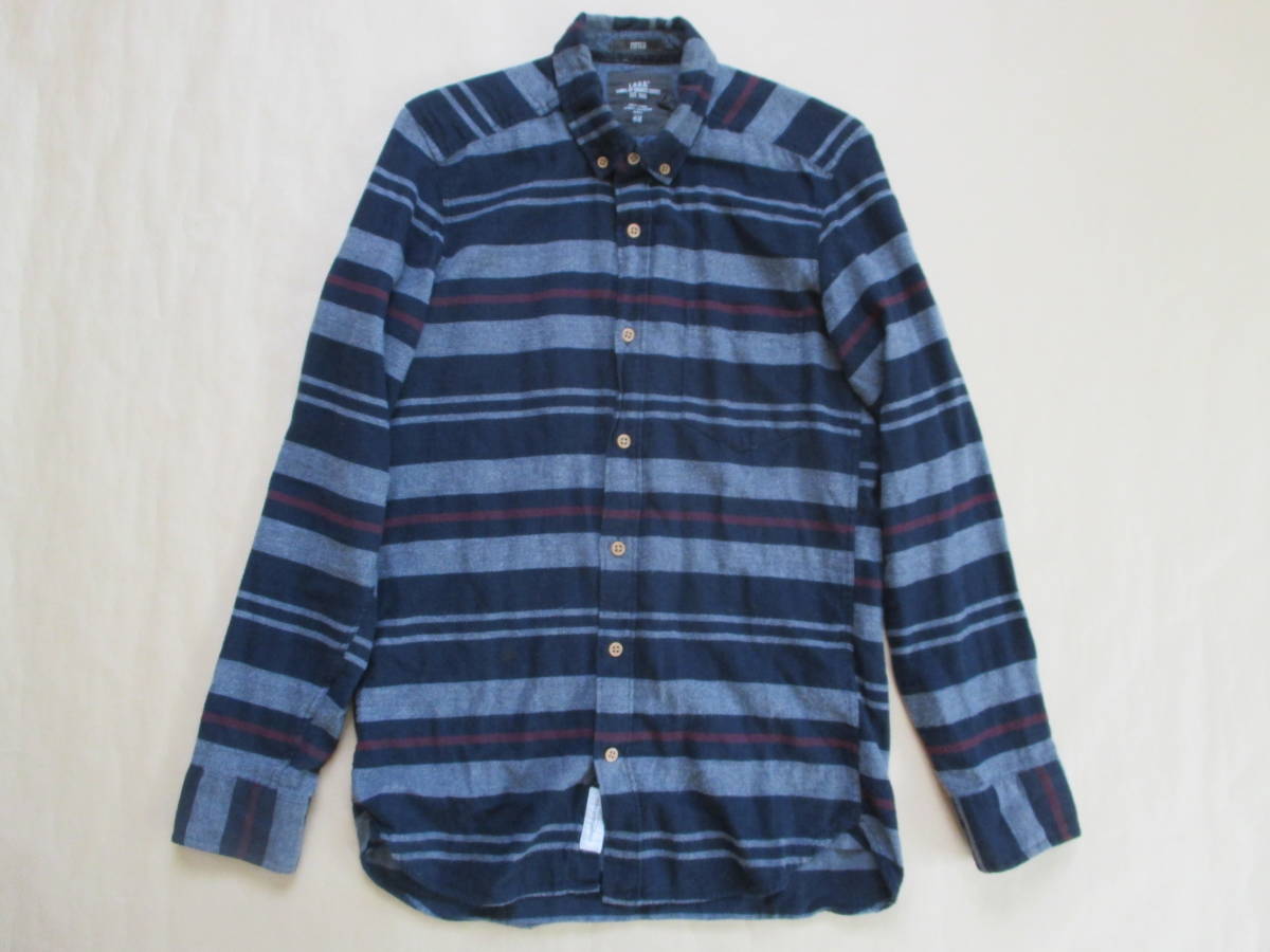 - H&M 長袖 ボタンダウン 紺 ボーダー ネルシャツ XS S エイチ&エム シャツ