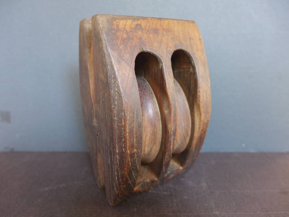 - ★ レア 時代物 明治大正期頃 木製一刀彫 滑車(2車) 古道具 アンティーク 骨董 ★
