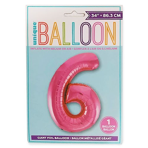 - 送料込 フォイル ナンバーバルーン (#6 ホットピンク) 34 86.3cm 16053 風船 数字 数 大きい 誕生日 パーティーグッズ party 飾りつけ
