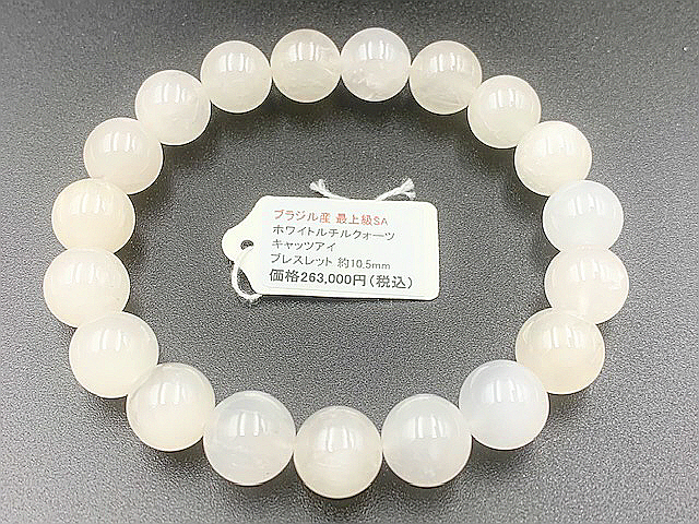 - 天然石 最上級SA 希少『ホワイトキャッツアイルチルクォ―ツ』ブレスレット 10.5㎜ 余裕の男性サイズ 天然石 パワーストーン