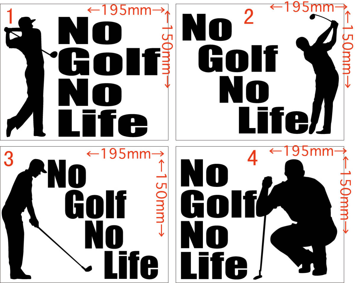 > No Golf No Life (ゴルフ) (4種中1点選択) カッティングステッカー 耐水・耐候 車やバイクのワンポイントやキズ隠しに