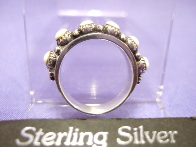 - 横浜最新 シルバー925SILVER 銀♪魅惑のホワイトバファロー風6石リング 15号 男性女性 送料無料ξgRξ ξ指輪b53z
