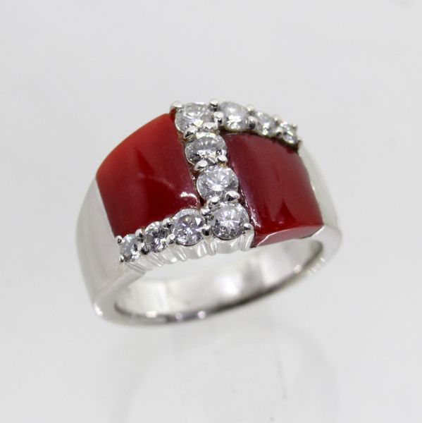 - ◎中古美品◎プラチナ 赤サンゴ ダイヤ 0.72ct リング 12号
