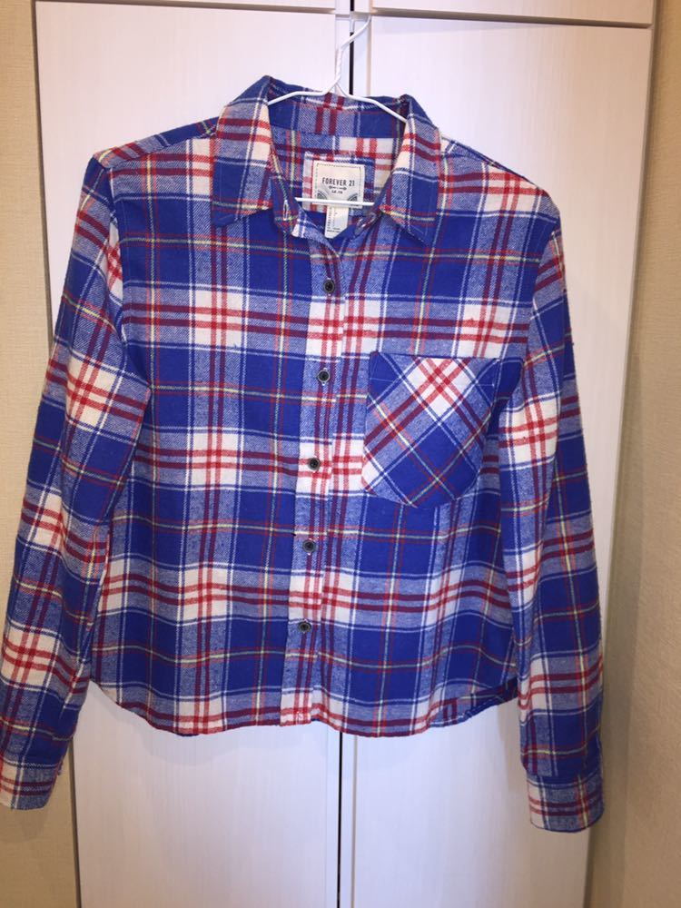 - 訳あり フォーエバー21 Forever21 フランネルチェックシャツ 長袖 サイズS ブルー系