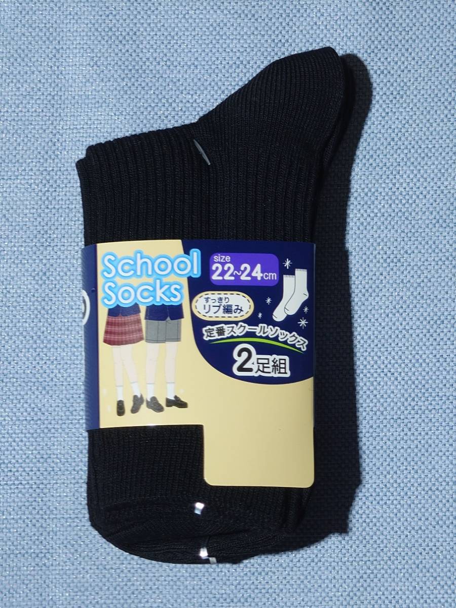 - クルーソックス リブ 2足セット ブラック 22~24cm 32002-22B