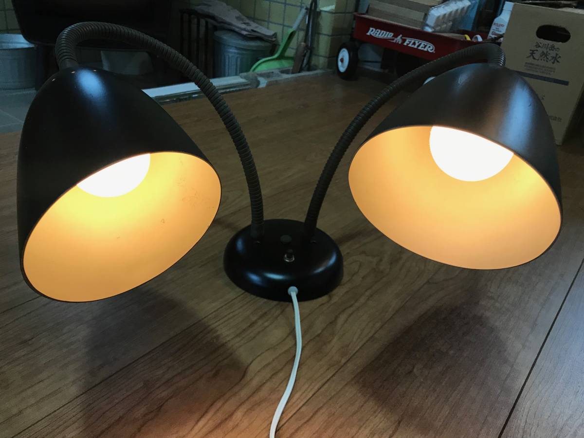 - 【'50s/'60s アメリカンビンテージ】インダストリアル・アイアン・黒色2アーム照明 $【ロカビリー】【昭和レトロ】【レア】