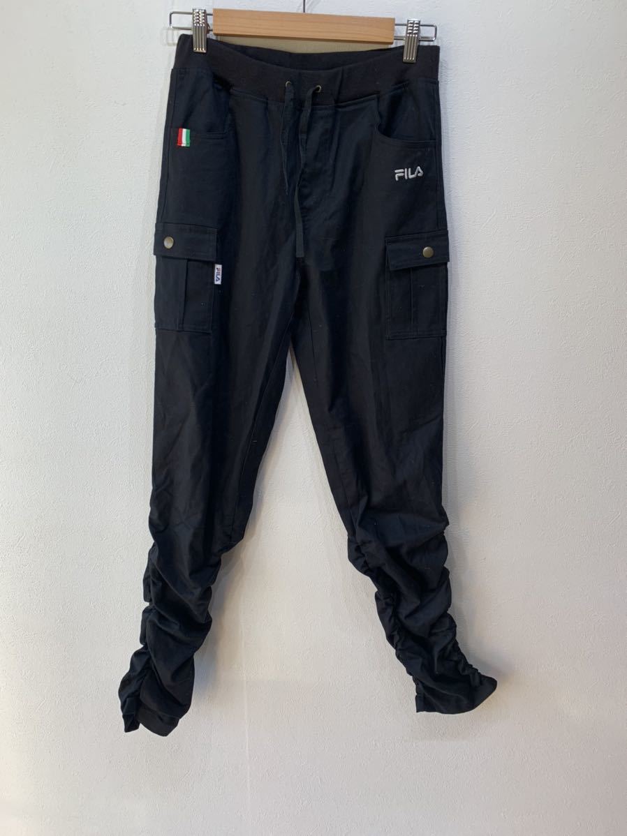 - 【人気】未使用 タグ付き FIRA/フィラ カーゴ ストレッチ パンツ サイズ Mサイズ 64~70 黒/ブラック 裾 ストレッチ K1359