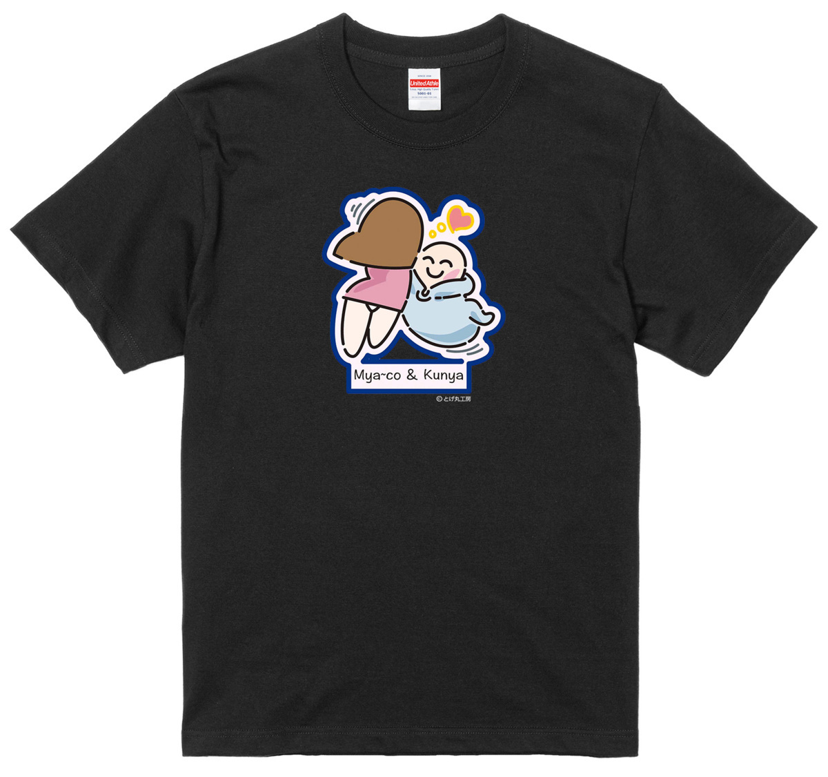 > 深川行敏先生 イラスト Tシャツ 黒 05 切り絵 イラストレーター [ミャ~コ&クニャ]シリーズ