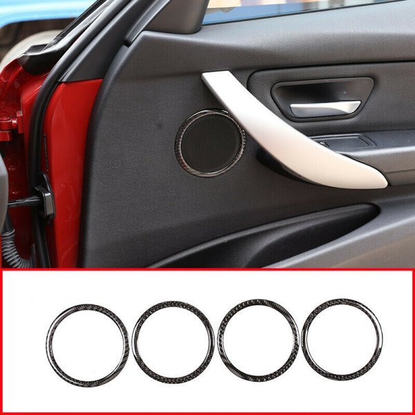 > BMW 3/4シリーズ F30 F33 F36 2013-2019 4PC カーボンファイバー ドアスピーカー リングトリム TA258