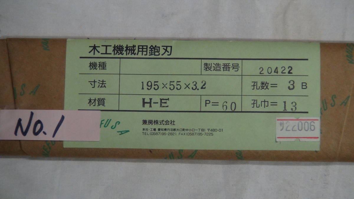- 木工機械 カンナ刃195*55*3.2*二枚刃 新品未使用品№1