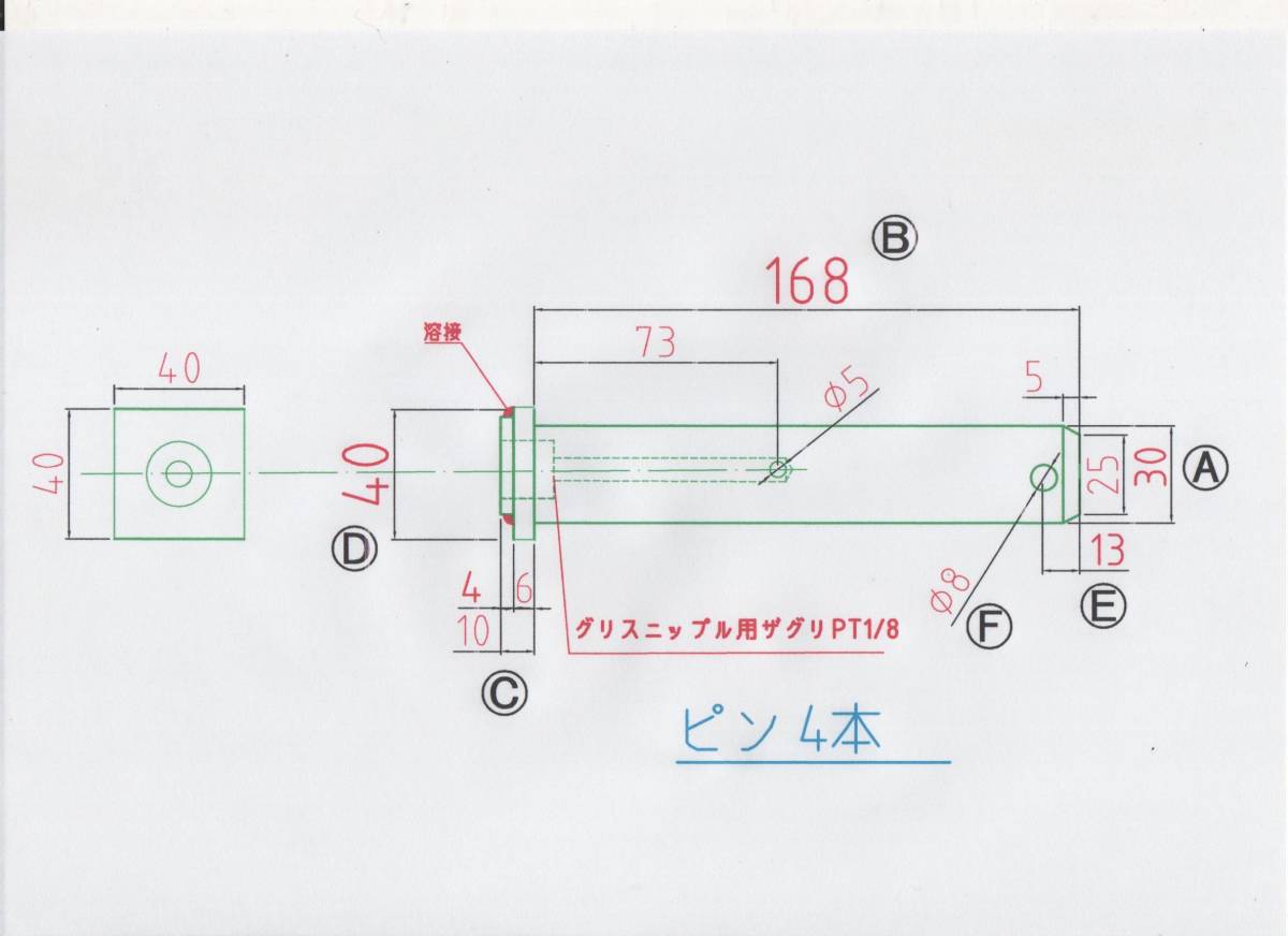 - NO989 Φ30用 溶接ツバ下168mm ニップル穴付きバケットピン 4本 1セット