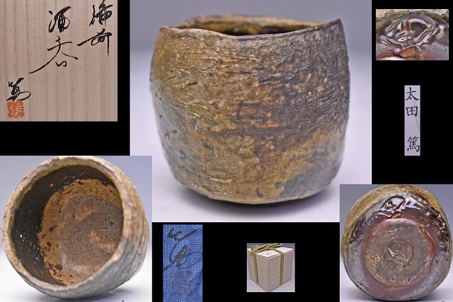 > 太田篤 ★ 備前ぐい呑 ★ 共箱共布栞 ★ 塗土タイプに自然釉の灰被り ★ 手持ちの良いカタチ ★