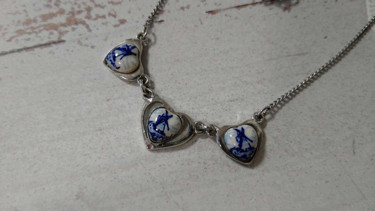 - □3連ハート×白・紺の風景柄・ネックレス□