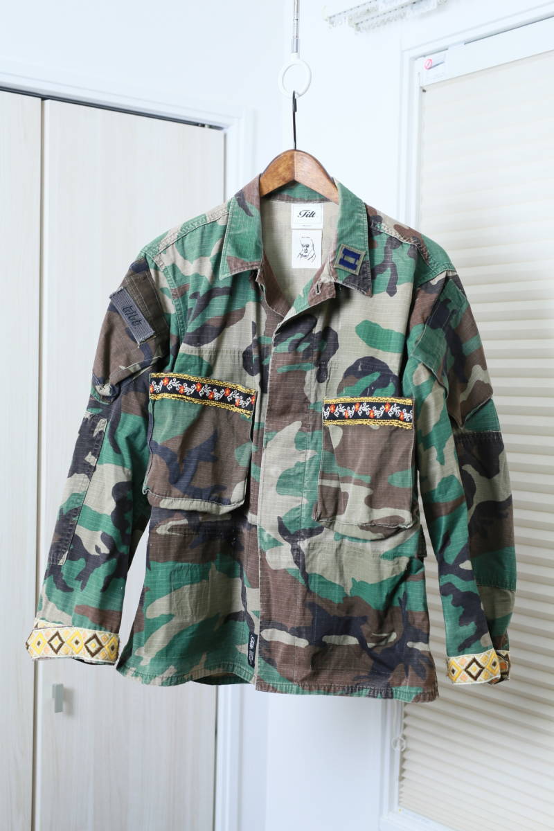 Tilt リメイク品 チロリアンテープ加工カモフラ柄ミリタリージャケット