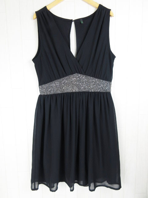 > スティーレベネトン STILE BENETTON ワンピース フレア ノースリーブ カシュクール ギャザー ビーズ 黒 ブラック S