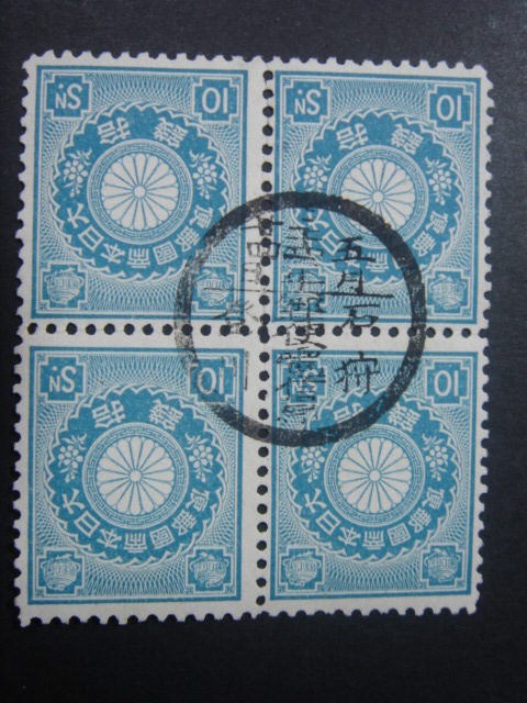 - 【小型丸一縦書印】菊10銭 34.5.24/石狩/郵便電信局/登川 (田型)