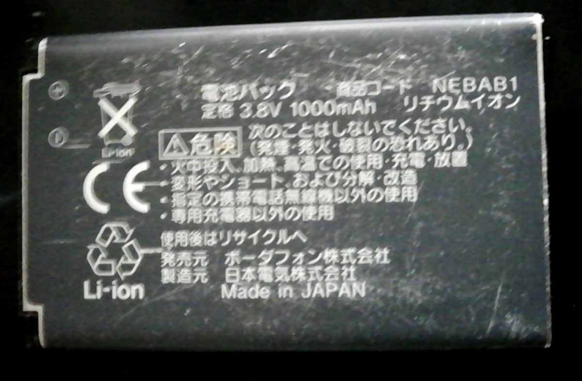 - 【中古】ソフトバンクNEBAB1純正電池パックバッテリー【充電確認済】対応機種(参考)804N