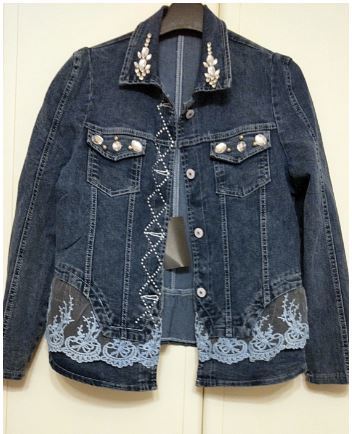 - 新品 未使用 M~L デニム ジャケット Gジャン ラインストーン レース デニムジャケット レディース ストレッチ